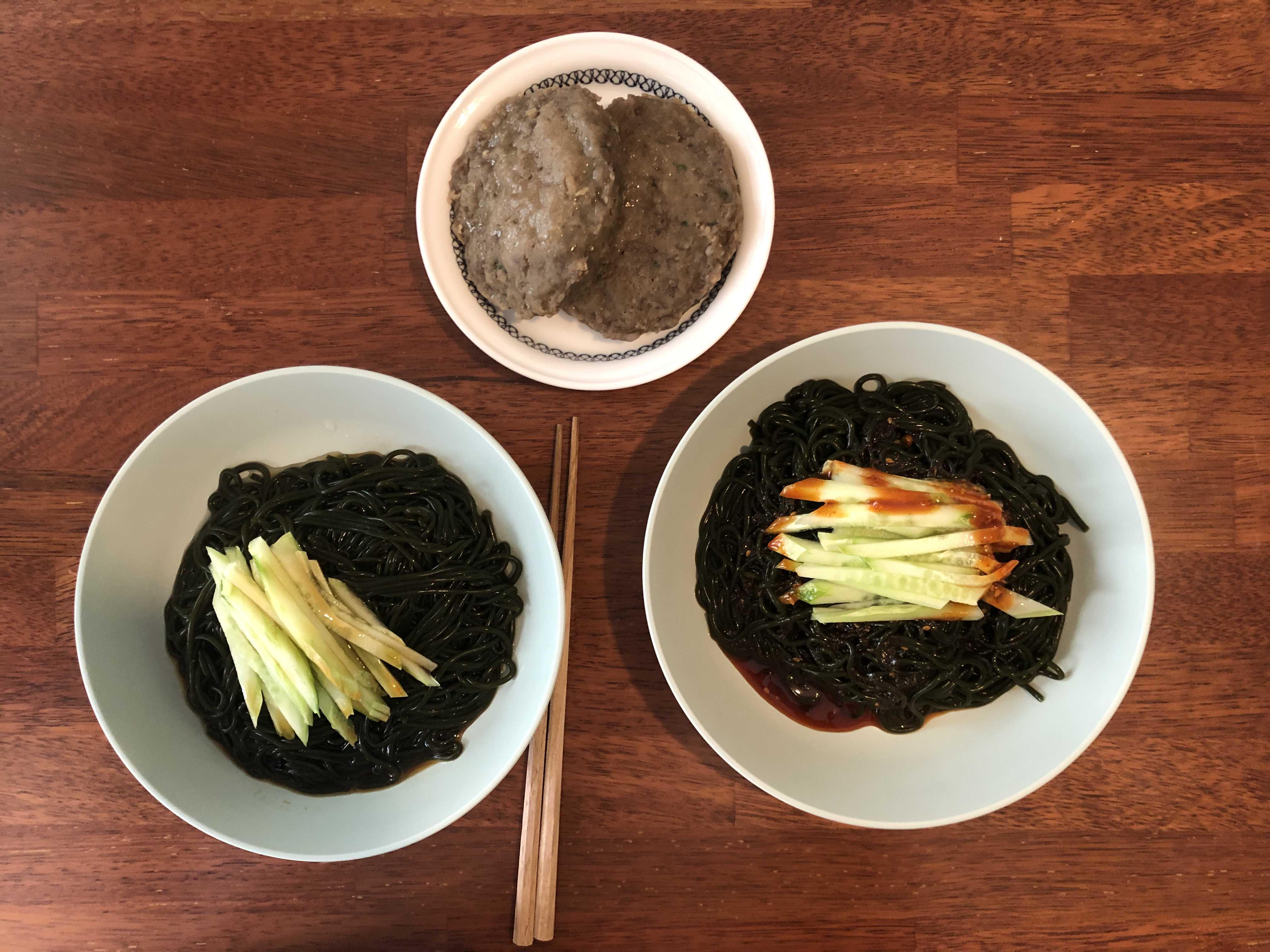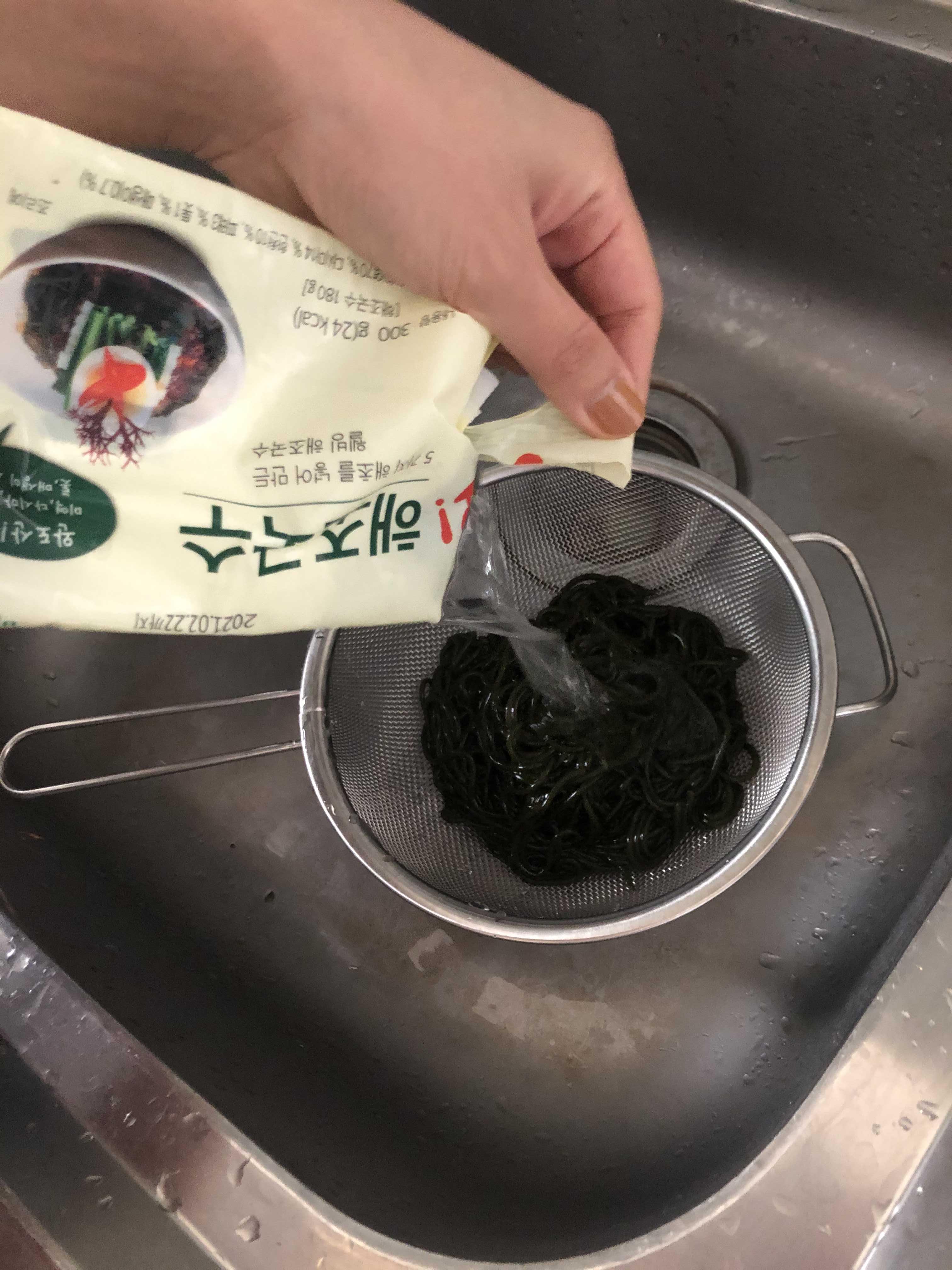 냉장고에 차갑게 보관해둔 해조국수를 빼서