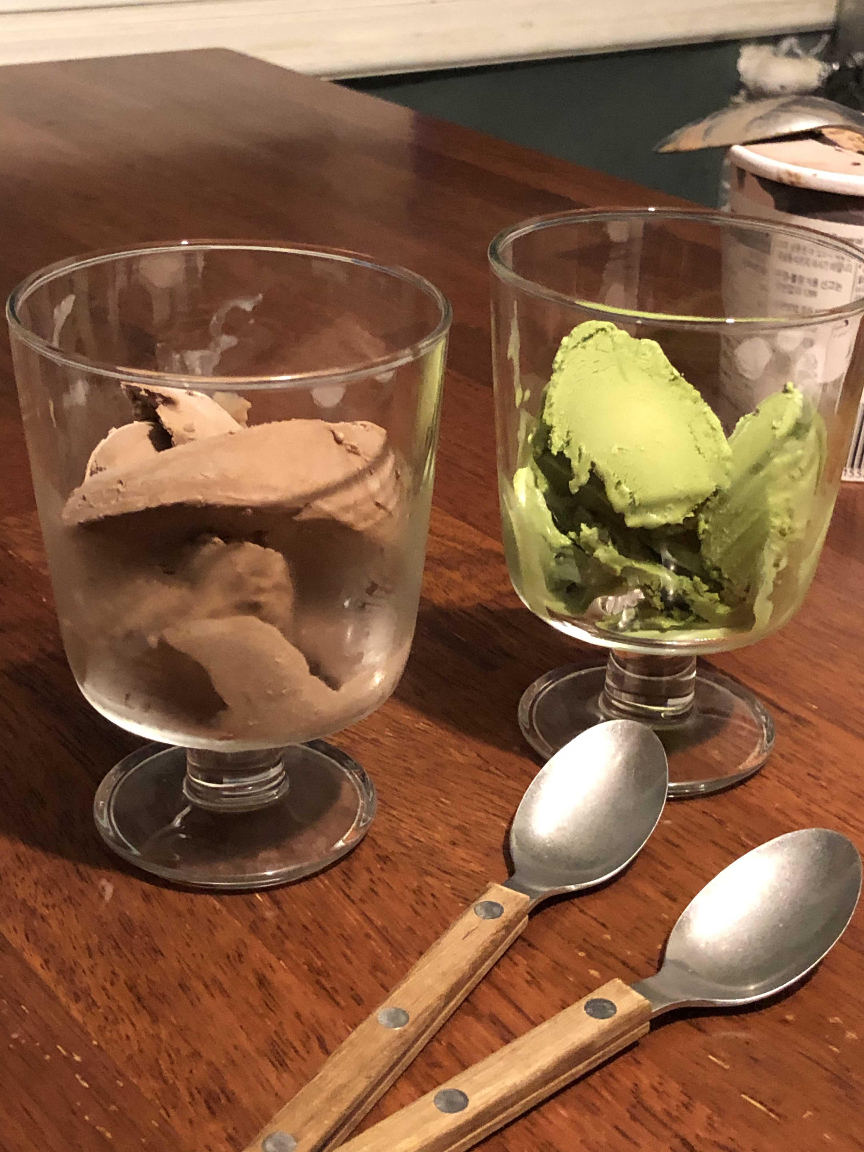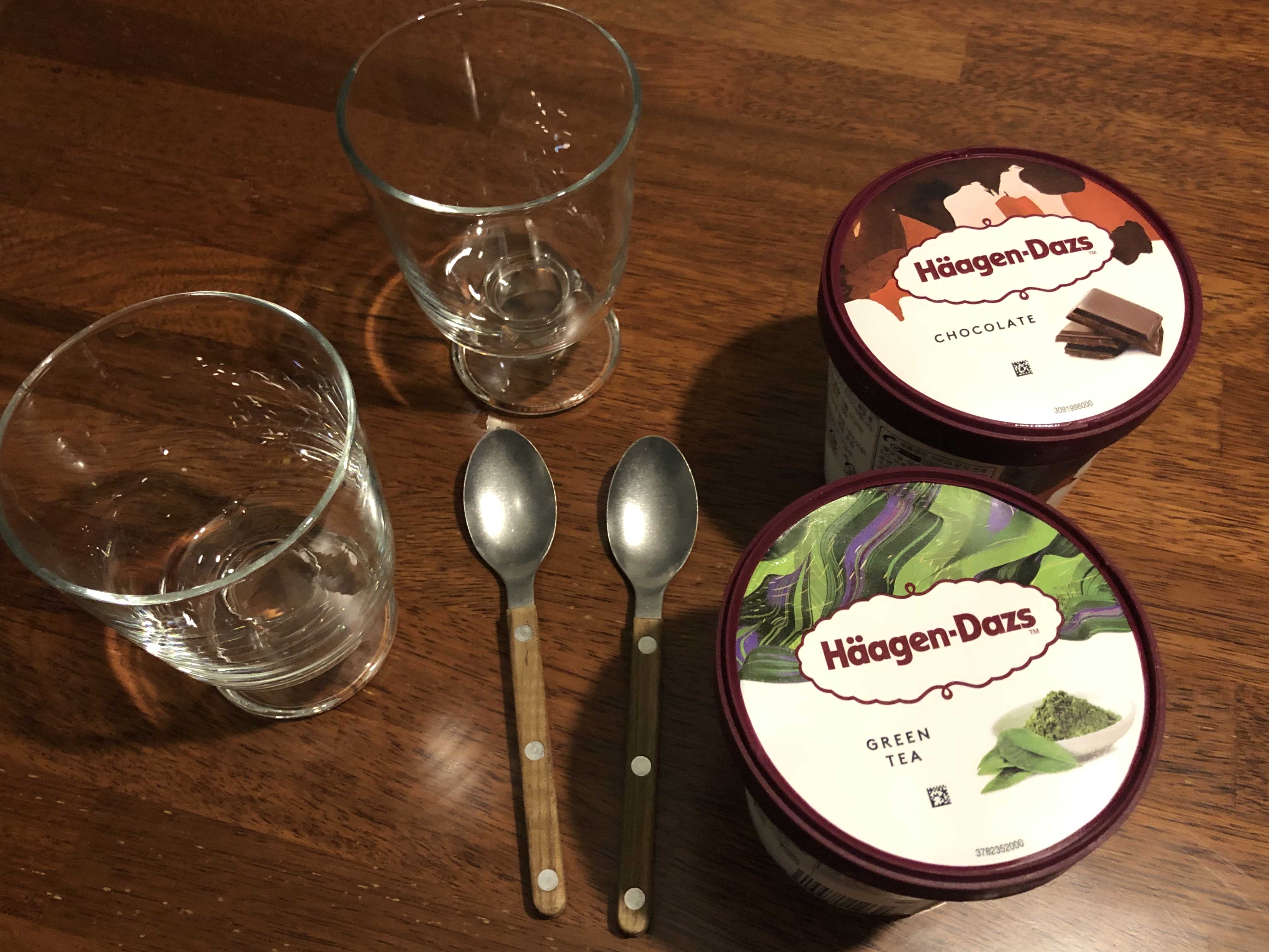 하겐다즈는 녹차맛과 초코맛을 준비하였다.